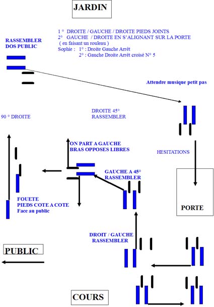 Cette petite chorégraphie a été mise au point spécialement pour la pièce par la section danse du Foyer Rural de Rouffiac. Merci Geneviève, Merci Jean Charles.