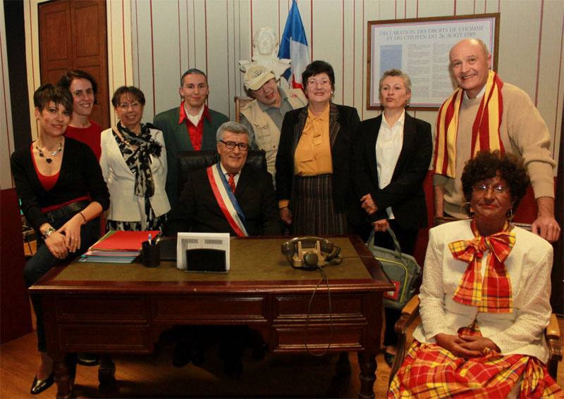 Pascale, Lolita, Raymond, Marielle, Marie, Philippe, Cyril, Catherine, Lionel, Brigitte... autour du bureau du maire.